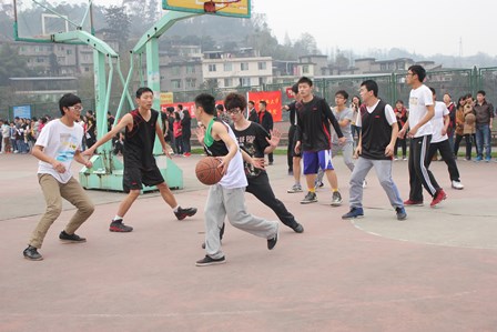 开幕式后,恒丰强公司代表为此次篮球争霸赛揭幕战开球,这也标志着第二届“恒丰强”杯班级篮球争霸赛的正式开始。据悉,共有8支队伍参加此次篮球赛。赛场上,队员们奋力拼搏,挥洒着汗水,因为,他们的心中有着同样一个目标——冠军。赛场边,拉拉队员们也不甘示弱,为各自的队伍呐喊助威,一阵阵的加油声正好响应此次篮球赛“青春如火——骄阳如我”的主题。