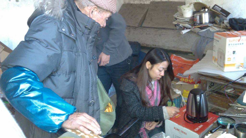 孤寡抗战老兵韩秉贤的家位于名山县万古乡九间楼村,不到20平米的房子,家徒四壁,唯有一张破旧木床和一张“瘸腿”的书桌,本就贫困生活,因芦山地震更是雪上加霜。雅安雨水多,湿度大,韩老的家里总是潮潮的,被子和枕头总是润润的,天气愈加寒冷,家里却没有任何可以取暖物品。志愿者们给韩老送去了电热毯、电暖炉等日常取暖用品,加上前番送去的御寒衣物和棉被,韩老感动的说:“今年冬天可以了!”志愿者们耐心地教韩老使用取暖电器,讲解注意事项,陪韩老聊天,让韩老感受到了亲人般的关怀。