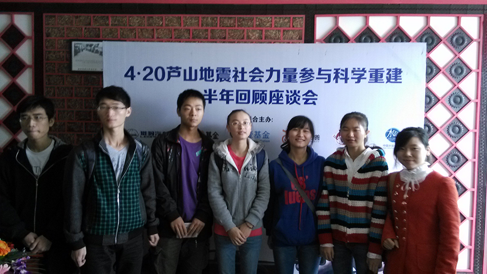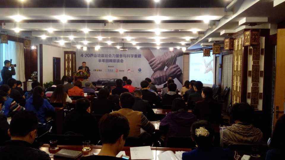 11月6日上午9点,4·20芦山地震社会力量参与科学重建半年回顾座谈会于雅安西康大酒店举行。会议由猎豹汽车、芒果v基金、壹基金、龙越慈善基金会、免费午餐、中国水安全公益基金会联合主办。共青团省委机关党委书记赵京东、雅安市政府副秘书长王绍忠、共青团雅安市委副书记赵龙、湖南猎豹汽车品牌总监、芒果v基金等国内5家知名基金会代表、四川全媒集团副总编辑等许多媒体朋友出席了会议,bat365官方网站7名抗震救灾志愿者代表与会。