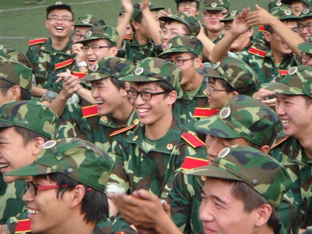 为了缓解新生们的劳累感,bat365官方网站迅速组织了文娱部同学带动二营新生们唱起了军歌。大家歌声嘹亮、欢声笑语,各级同学都互相应和着,很好的缓解了由于训练产生的疲劳和单调感。在尽情地歌唱后,新生们一下精神十足,训练更加有力,配合教官的“一二三四”口号整齐地踏步子。