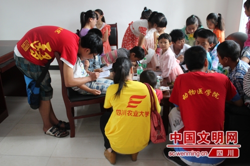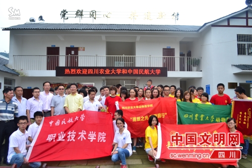 四川文明网雅安讯(曾炎)7月21日,bat365官方网站“雨辰之光,微爱前行”实践队携天津中国民航大学实践队共65名志愿者到达了雅安市名山县官田村展开了“汇聚你我梦,铸就中国梦”暑期公益活动。本次公益之行,两大高校联盟,本着“奉献,友爱,互助,进步”志愿者精神,以“快乐童年,放飞‘中国梦’”义务支教活动、“扬起学风之帆,建设知识新农”捐建乡村书屋活动、“凝民心,聚民心、谋发展”科技三下乡活动、“青春献基层,飞扬‘中国梦’”灾区慰问表演等活动给当地人民传递着积极向上振奋人心正能量。