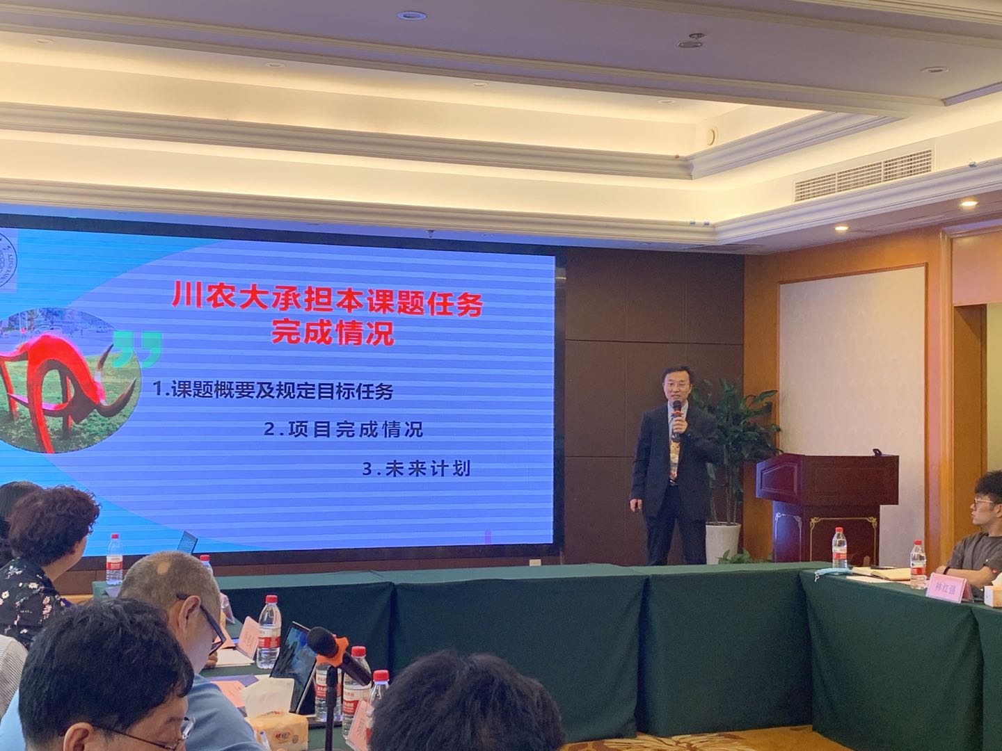 何廷美和曹三杰代表会议主承办方致辞。随后何廷美和学院教学医院院长彭广能分别做了项目进展汇报和财务汇报。保护区相关保护站、防护办公室及项目各课题负责人分别对《陆生野生动物疫源疫病监测技术规范》、《陆生野生动物疫源疫病监测工作的要求》、《样品采集、保存与运输》等技术规范进行了宣讲讲解,对项目进展进行了汇报,对后续计划实施和方案进行了充分讨论。