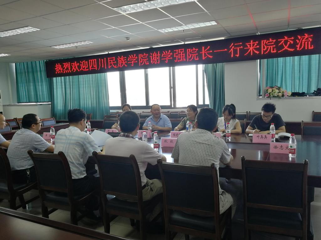 7月2日上午,四川民族学院农旅学院副院长谢学强一行六人来访bat365官方网站,就动物医学专业建设、人才培养、本科教学等教学改革进行座谈交流。学院副院长曹三杰、动医专业负责人陈正礼、基础兽医学系主任耿毅、预防兽医学系主任黄勇、药学系主任符华林、动植物检疫系主任徐志文等参加了会议。