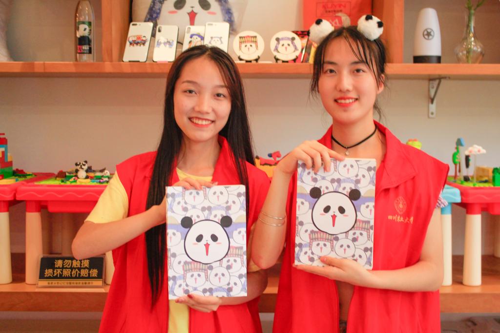 值得一提的是,守护使们首次在熊猫家展开了一场别开生面的“直播带货”大会,同学们走出高校化身代言人,亲身为熊猫村文创产品直播代言,本次出镜的文创产品有熊猫手工针织帽、客家熊猫形象笔记本、熊猫村山泉等产品,直播现场氛围高涨,效果颇受好评。“熊猫村山泉,取用熊猫村天然山泉,大熊猫同款饮品你值得拥有!”,“熊猫针织帽,纯手工制作,一对一匠心定制。”代言人热情为同学们介绍熊猫村文创产品,体验了一把“网红主播”的快感。