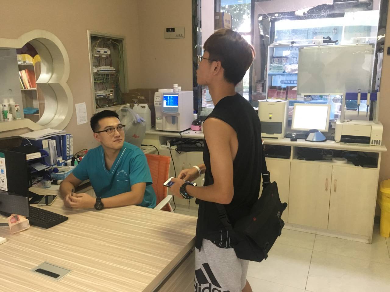8月12日,团队成员赵瑾前往成都市三只宠物联合诊所调研,先向护士询问了一些关于中兽医的治疗问题,护士表示听说过,但该诊所实际利用中兽医治疗的病例很少。之后在和宠物医生的交流过程中得知:中兽医作为宠物医疗行业新型的临床治疗手段上市不久,平常生活中以西医为主,很多宠物主人也倾向于使用西医治疗,中兽医的普及度还远远不够。