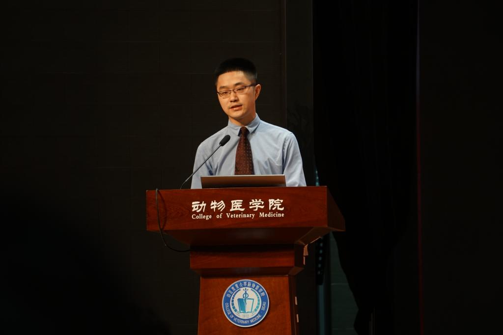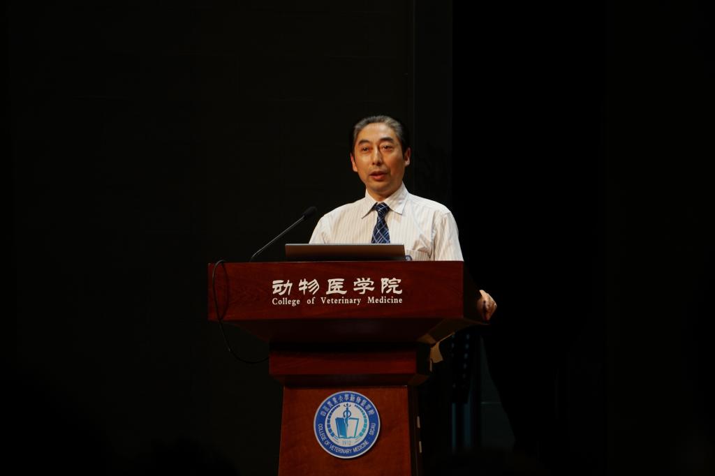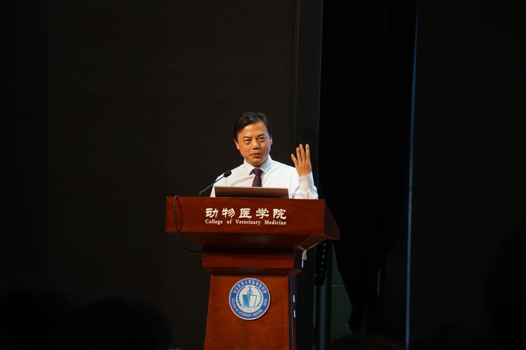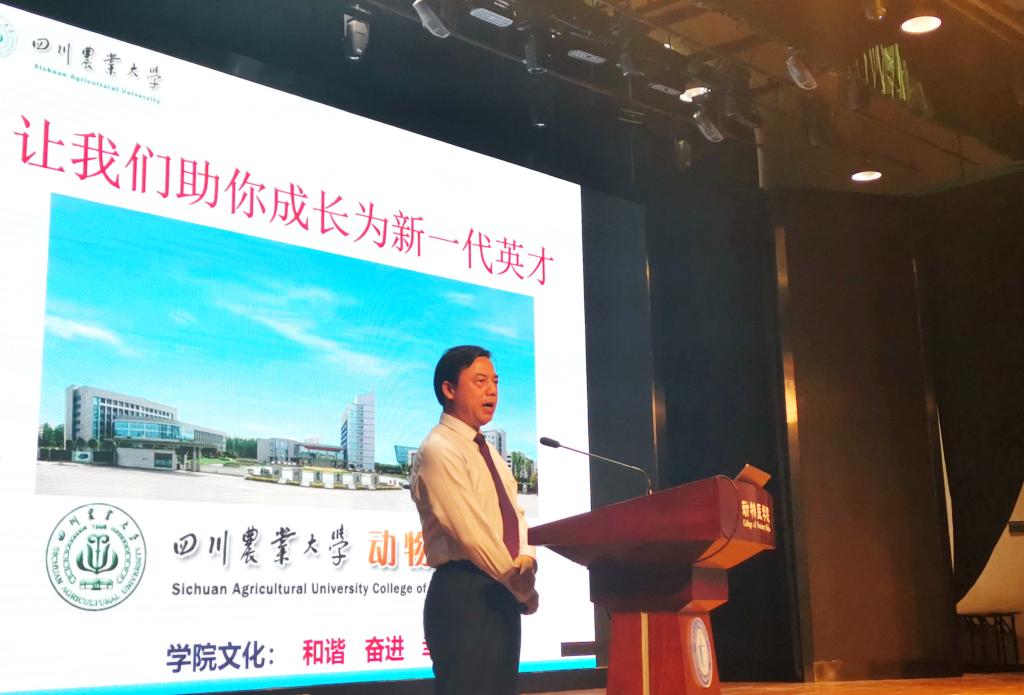 最后,院长程安春向新生讲授学院“开学第一课”,为来自五湖四海的新动医人介绍了学校、学院相关情况,各专业的发展愿景和行业动向以及从医者的理想信念、对社会安全健康稳定的价值。同时,结合“吉林长春生物事件”、“日本狂犬病现状”、“埃博拉病毒防治”等实例向新生解析了动物疾病的防控与人类日常生活重要关系,传递了动医学子应具备的“防治动物疾病,保护人类健康”的学业职业和人才理念,勉励动医新生要坚定专业自信,为“同一个世界,同一个健康”和美丽健康中国贡献自己的青春力量。