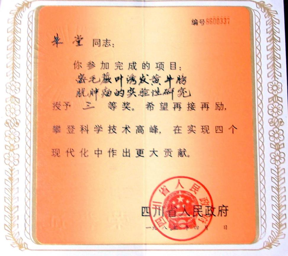 朱堂教授是最早创建我国兽医学的专家之一,长期致力于临床兽医学的教学科研工作。他治学严谨,对待学术研究一丝不苟,将自己的一生都奉献给了兽医事业。他对动物疫病防控的研究和兽医工作充满热情。1950——1953年朱堂教授致力于帮助西康西昌农林科解决动物疫病防治问题,并作为1951年冬西昌兽医防治班的主要培训教员,为当地的兽医防疫工作做出了重要贡献。他参加的《纤曲直接喂猪的增值效果》科研课题研究,于1978年获四川省重大科研成果四等奖。80年代初,他参与《四川耕牛地方性血尿病研究》,首次探明了四川耕牛地方性血尿病的病因是蕨类植物中毒,成果《密毛蕨叶诱发黄牛膀胱肿瘤的实验研究》于1987年获四川省人民政府科研成果三等奖。朱堂教授予1990年获四川省畜牧兽医学会“从事畜牧兽医工作愈四十年”表彰,1992年获四川省农学会“献身四川农业四十年业绩”表彰。他撰写的论文《民国时期,四川的畜牧兽医教育概述》于1991年获四川省畜牧兽医学会优秀论文奖,《屠宰场中的人兽共患病》1998年获雅安市科学技术协会优秀论文奖。他编辑出版的《实用畜禽中毒手册(四川大学出版社)》1996年获中国畜牧兽医学会动物毒物学分会、中国毒物学会毒物学史专业委员会优秀著作奖。