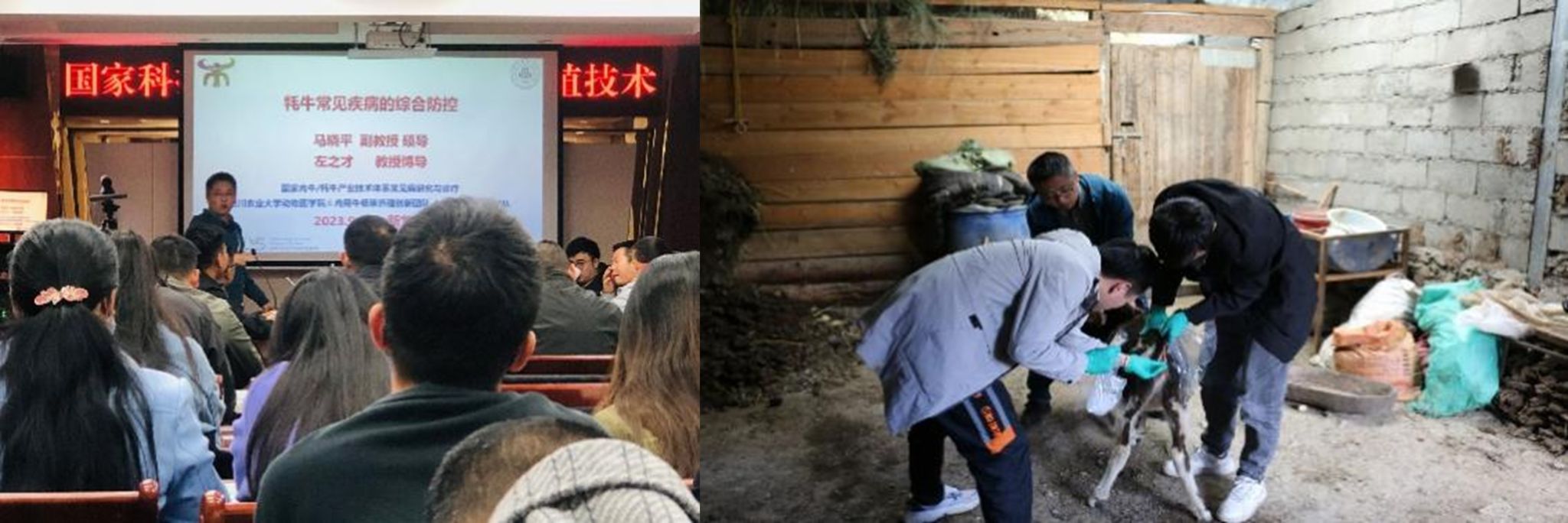 近日,为深入落实党中央对巩固拓展脱贫攻坚成果同乡村振兴有效衔接的重要部署,持续推进产业振兴助推乡村振兴高质量发展,国家肉牛牦牛产业技术体系常见病研究与诊疗岗位专家左之才教授团队成员、四川肉牛创新团队肉牛主要疾病防控技术研究与集成应用岗位专家马晓平副教授,硕士研究生袁世林、袁野及国家肉牛牦牛产业技术体系营养与饲料研究室主任王之盛教授团队博士研究生代鹏一行4人受邀随国家肉牛牦牛产业技术体系红原综合试验站站长、四川省草原科学研究院副院长、新龙科技特派团团长罗晓林研究员、四川省草原科学研究院副研究员赵洪文、闫利军、赵文吉、沙泉等一行赴四川省甘孜州新龙县开展牦牛疾病培训及调研等指导工作。