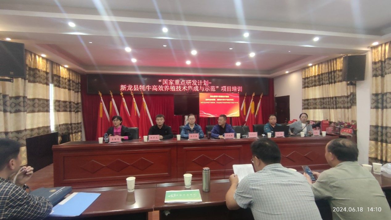 19日上午,为全面推进2024年托底性帮扶暨科技特派团产业帮扶工作落地落实,专家团队一行参加了新龙县召开的2024年国家科技特派团科技帮扶座谈会,新龙县委常委、县人民政府常务副县长熊永军、黄如一,县委常委组织部部长王熠、县政府办、县委办、县农牧局以及专家团队参加了会议,会议由组织部部长王熠主持。座谈会上,国家科技特派团新龙团长罗晓林、各产业组负责人以及“国家重点研发计划—新龙县牦牛高效健康养殖技术集成与示范”项目课题负责人结合自身工作任务,就在新龙开展的工作做了详细汇报。县农牧农村和科技局、康巴红公司就加快推进特色产业科技帮扶工作与各产业组专家开展交流讨论。县委常委、县人民政府常务副县长熊永军代表县委、县政府向专家组一行到新龙指导帮扶表示热烈欢迎和衷心感谢。他指出,科技特派团“组团式”帮扶工作成效显著,为推进我县乡村产业振兴、加快实现农业农村现代化提供了强有力的科技支持和人才支撑。