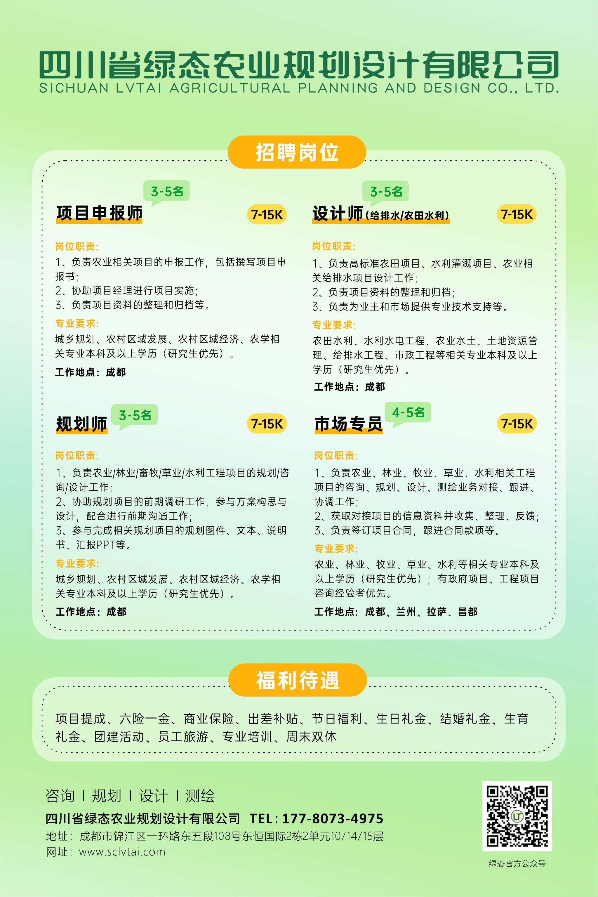 【3月27日专场双选会】四川省绿态农业规划设计有限公司招聘简章