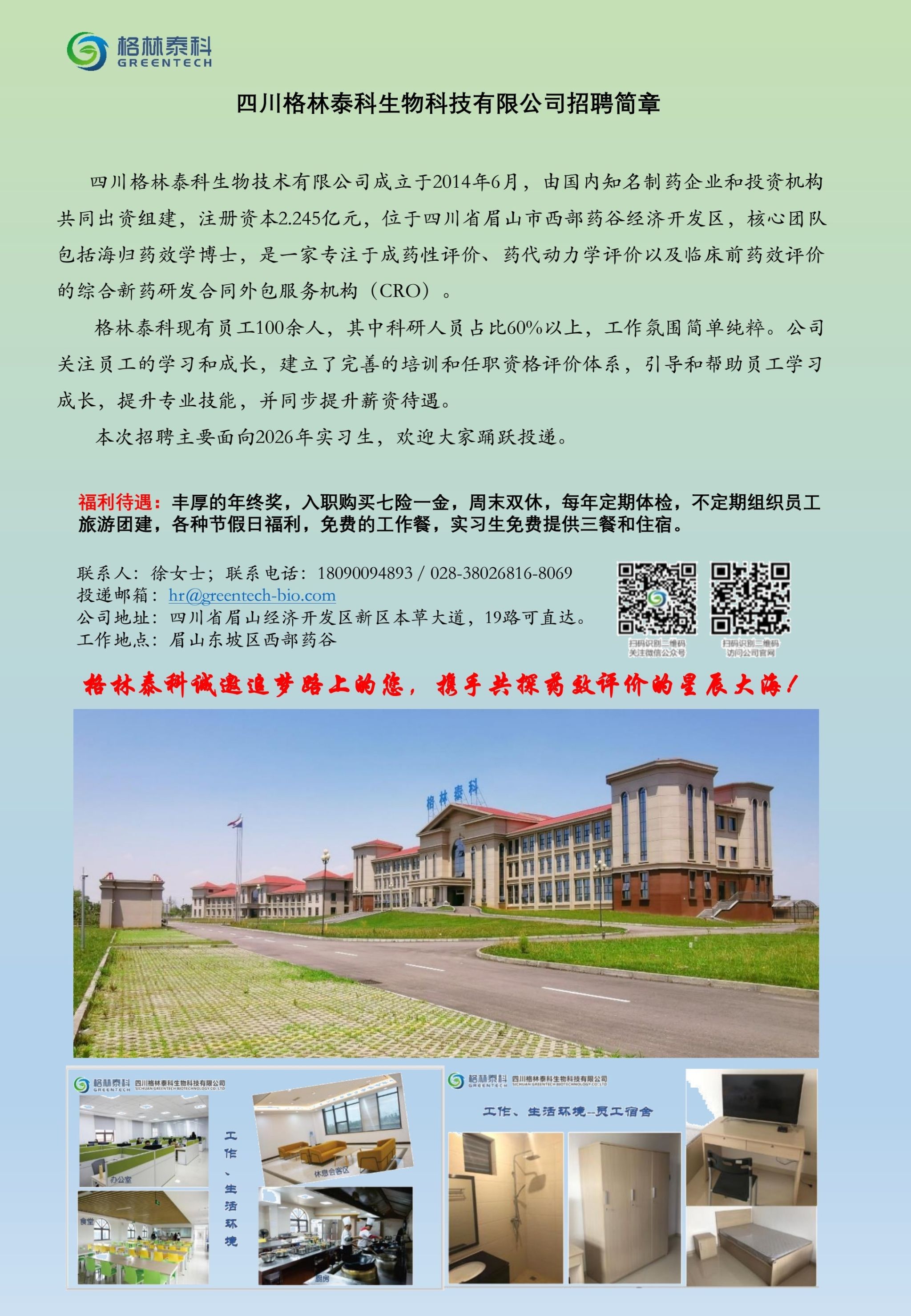【2025年暑假动医梦工厂】四川省格林泰格生物科技有限公司暑期实习招募通知