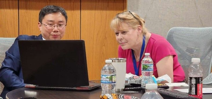实习过程中,谢跃教授也每天在医院四处奔波。他不仅参加了兽医院每月一次的新住院医师见面介绍会,参与跟诊、观摩手术,与普渡大学的兽医、教授探讨了各种病例,还需要每天确认实习团队中每位学生的实习情况,帮助同学们及时解决遇到的问题,以便帮助同学在实习轮转中更加顺畅,对实习病例的理解更加深入。此外,他还走访了普渡大学瘫痪研究中心、兽医寄生虫学教研室,并与兽医寄生虫学家Dr. Sriveny Dangoudoubiyam就兽医寄生虫学教学科研进行了交流。