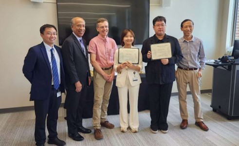 美国普渡大学兽医院院长Dr.Kathleen Salisbury、前院长Dr.Willie Reed为学员颁发了实习结业证书并合影留念,对师生们顺利完成实习任务表示祝贺。