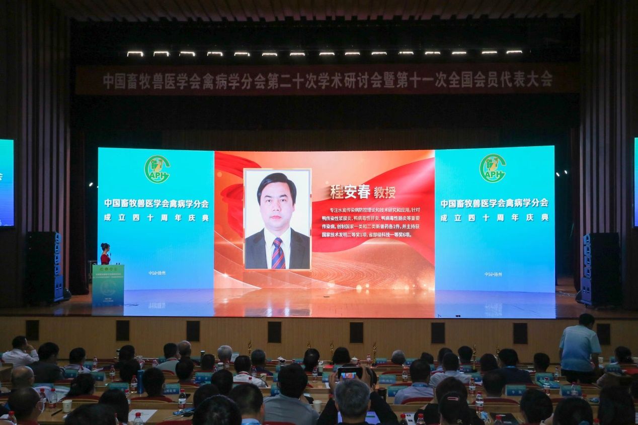 本次学术研讨会恰逢中国畜牧兽医学会禽病学分会成立40周年庆典,在颁奖仪式上,bat365官网bat365官方网站院长程安春教授获“突出贡献奖”、副院长陈舜教授获“禽病研究创新奖”和“学术创新奖”。