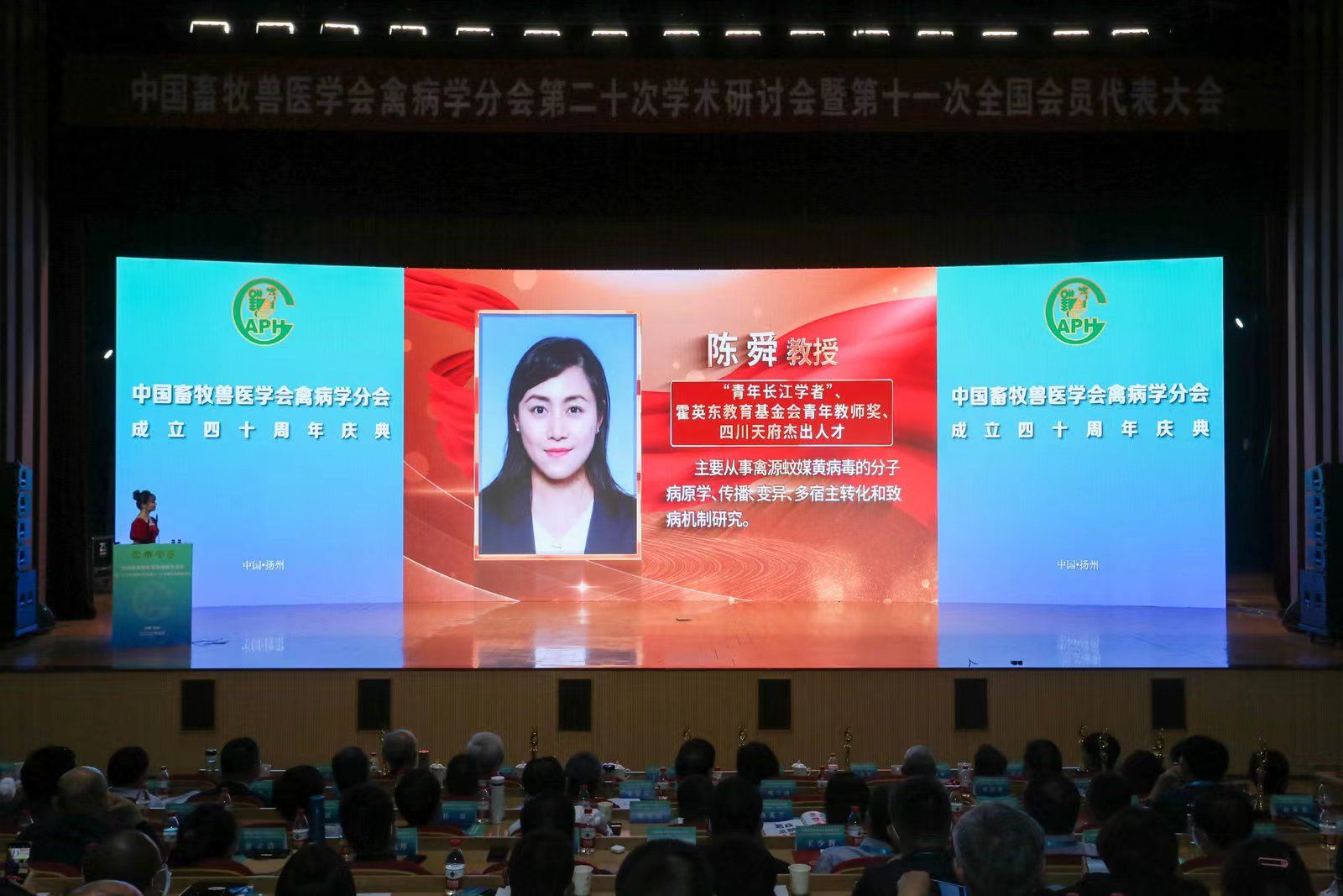 颁奖仪式上,陈舜教授获“禽病研究创新奖”