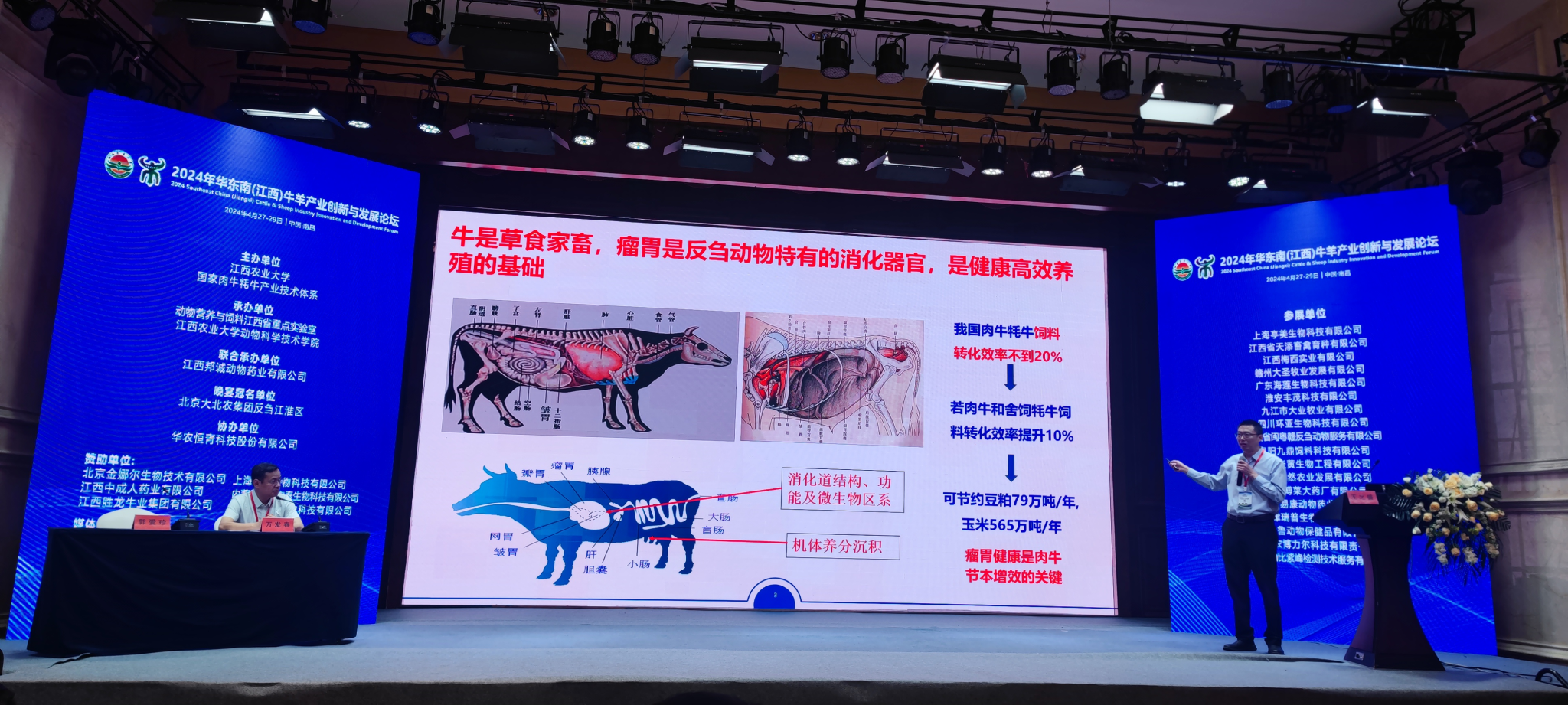 此次论坛由江西农业大学与国家肉牛牦牛产业技术体系联合举办,动物营养与饲料江西重点实验室和江西农业大学动物科学技术学院承办。来自华东南区域的牛羊企业、养殖场(户)、科研院所以及全国牛羊服务商、媒体等600位代表出席了本次大会,共同见证了牛羊产业的创新与发展。