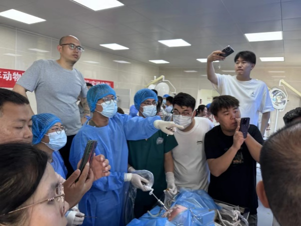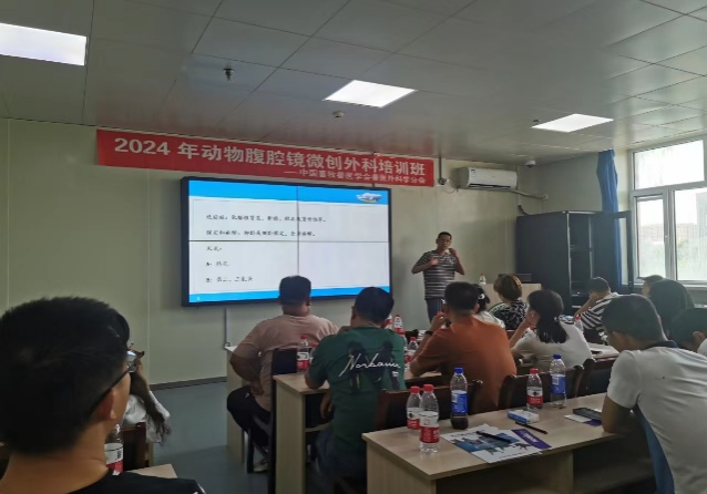 本次大会中,刘海峰老师在会前的腹腔镜技术培训中对来自全国多所高校及动物医院的23名老师和临床医生进行了“动物腹腔镜肾脏切除术”专题讲座和实操培训。周紫峣老师做了“基于CT的有限元分析在动物牙科中的应用研究”的学术报告,王鑫淼硕士在会上作“基于多组学探究脂肪间充质干细胞治疗肝纤维化机制”报告。