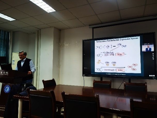 12月10-15日,国际交流合作处和bat365官方网站邀请美国田纳西大学终身教授Hwa Chain Robert Wang(中文名:王华骞)来校做学术交流。其间,王教授做了题为“A triple combination gemcitabine plus romidepsin+cisplatin to effectively control triple-negativebreastcancer tumor development,recurrence,and metastasis”(吉西他滨+罗美肽+顺铂三联疗法有效控制三阴性乳腺癌肿瘤发展、复发和转移)的学术讲座和“Research development & SCI manuscript preparation”(研究开展和SCI论文准备)的专业教学,线上线下听课人数近200人。
