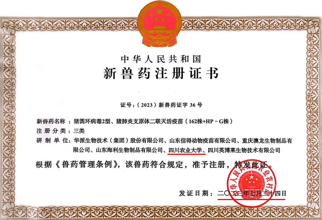 猪圆环病毒2型、猪肺炎支原体二联灭活疫苗( 162株+HP - G株)